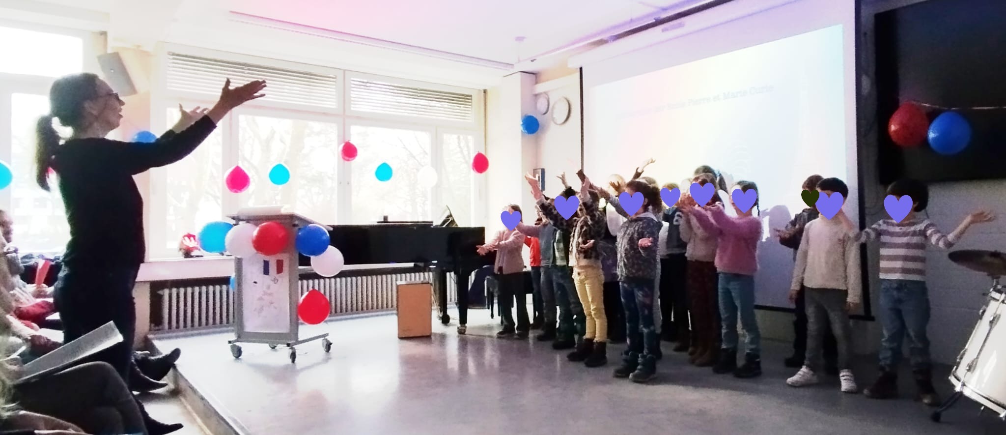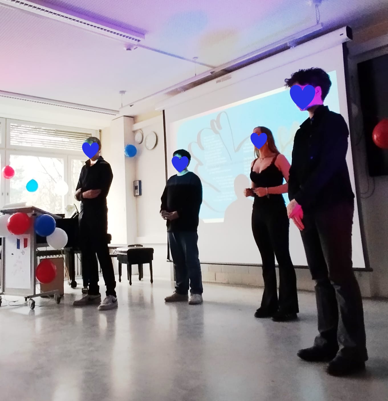 Notre chorale a interprété plusieurs chants en français et en allemand, accompagnée au piano par deux élèves. Les élèves du Bunsen Gymnasium ont, quant à eux, présenté des saynètes et des chants autour de thèmes forts tels que la puissance des mots, la paix et le vivre-ensemble.