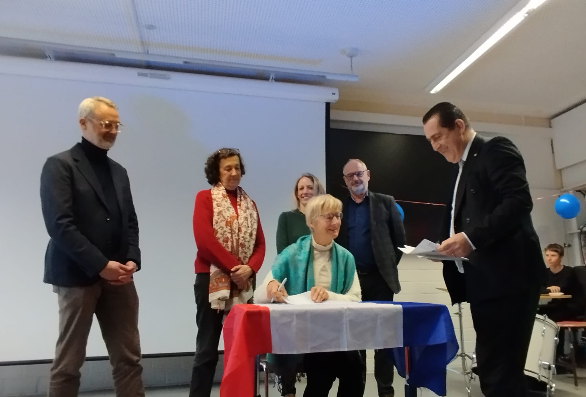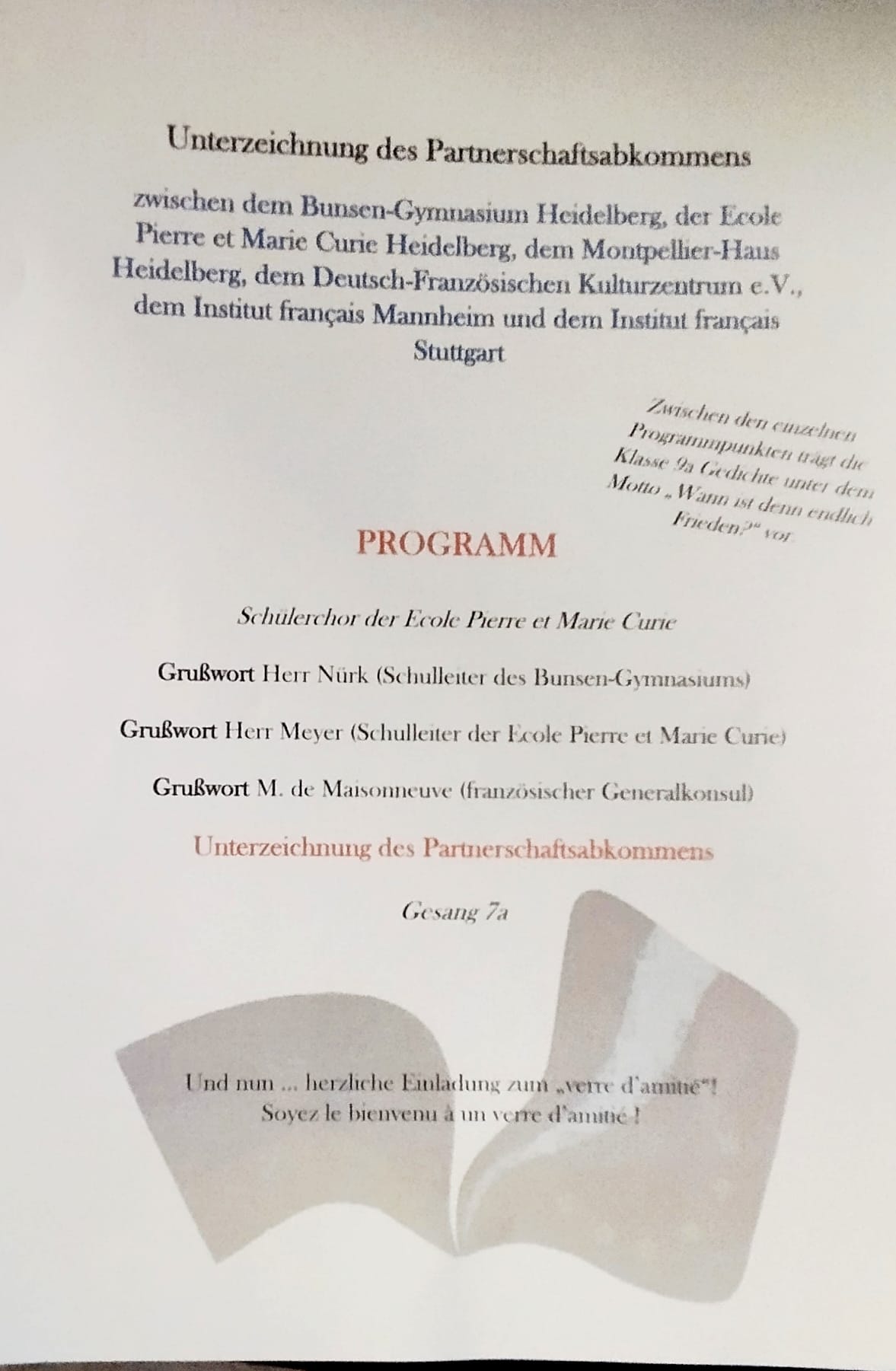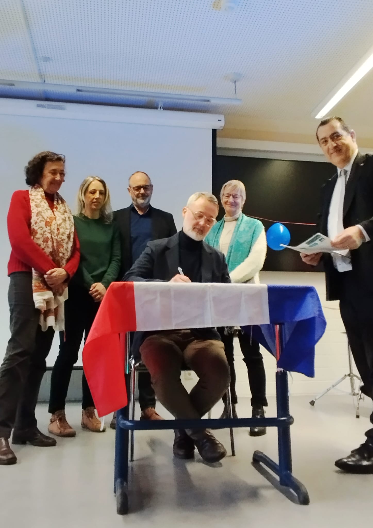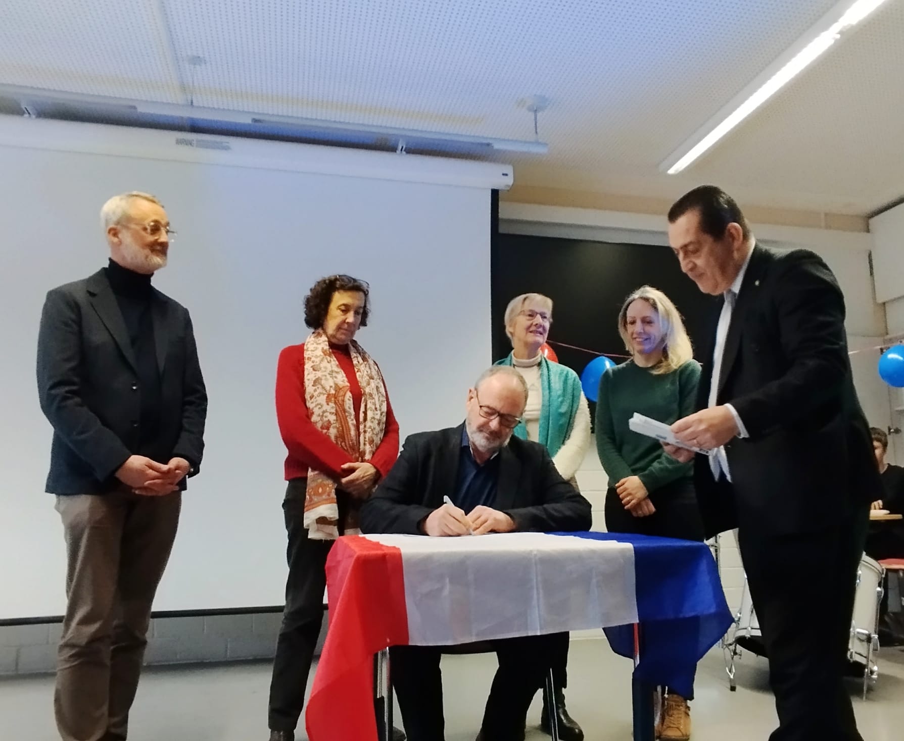 Lundi dernier a été signé le partenariat entre notre école, le Bunsen Gymnasium, l’Institut Français de Mannheim, la Maison de Montpellier et le DFK (centre culturel franco-allemand d’Heidelberg) dont nous vous avions récemment parlé.